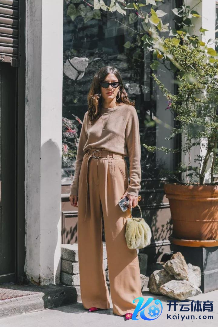 绮丽的颜色时常具有纷乱的视觉冲击力,或者赶快诱骗东谈主们的办法。联系词,在搭配毛衣与阔腿裤时,如果阔腿裤的脸色过于绮丽,很容易成为举座造型的视觉焦点,从而漫衍东谈主们的注办法,使上半身与下半身的均衡感被突破。