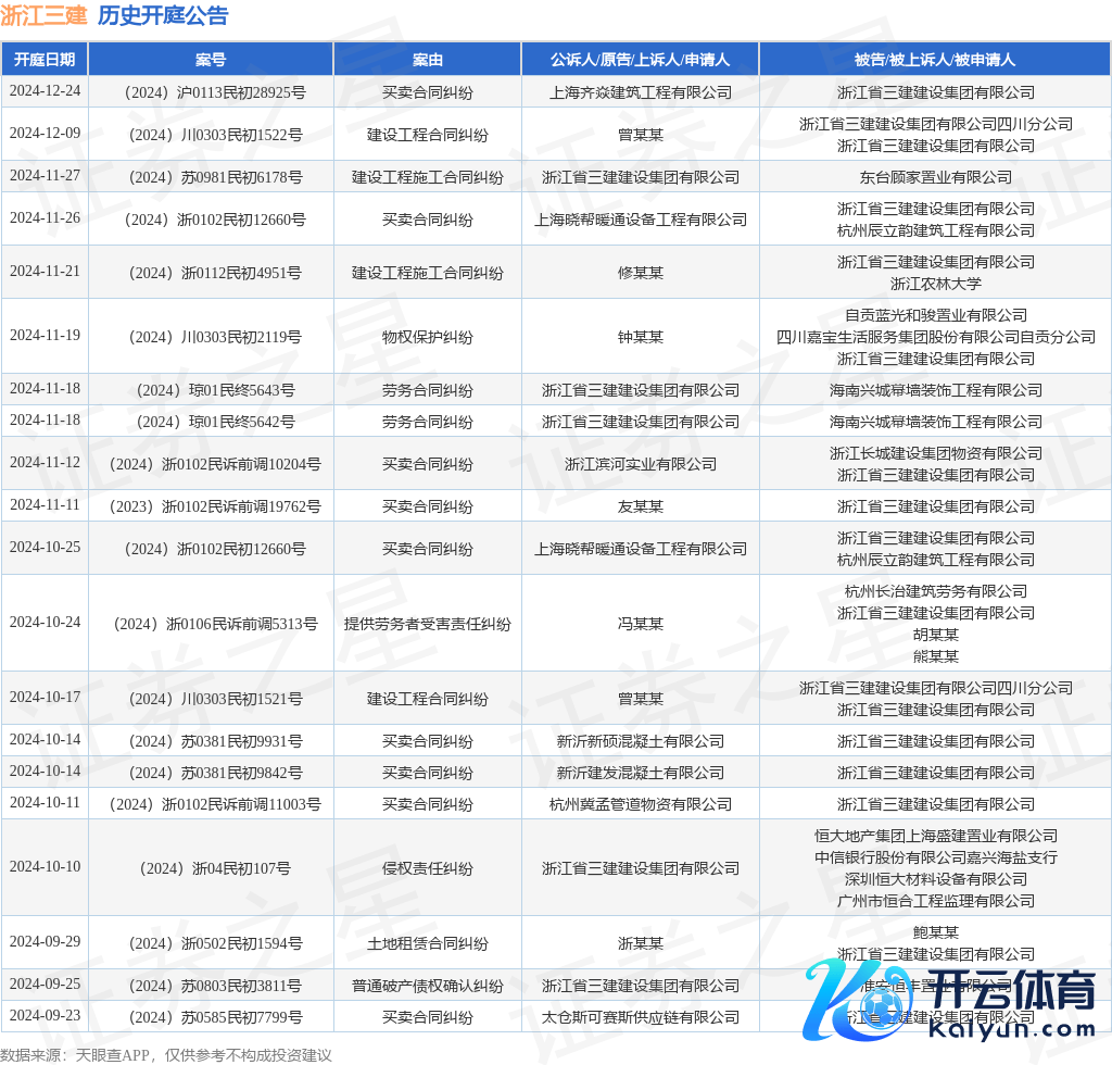 本站音书,说明天眼查APP走漏,近日公布了一则浙江省三建树立集团有限公司看成被告/被上诉东谈主的开庭公告九游体育app官网,详备骨子如下: 案号:(2024)浙0102民初12660号审理法院:杭州市上城区东谈主民法院案由:贸易公约纠纷当事东谈主信息:原告/上诉东谈主:上海晓帮暖通拓荒工程有限公司被告/被上诉东谈主:浙江省三建树立集团有限公司、杭州辰立韵建筑工程有限公司开庭日历:2024年11月26日 说明统计,近一年内以浙江省三建树立集团有限公司为当事东谈主的历史开庭公告有182则,其中案由