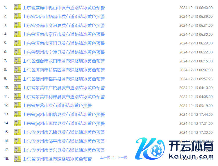 12日17时至13日7时,山东连发18个说念路结冰黄色预警!