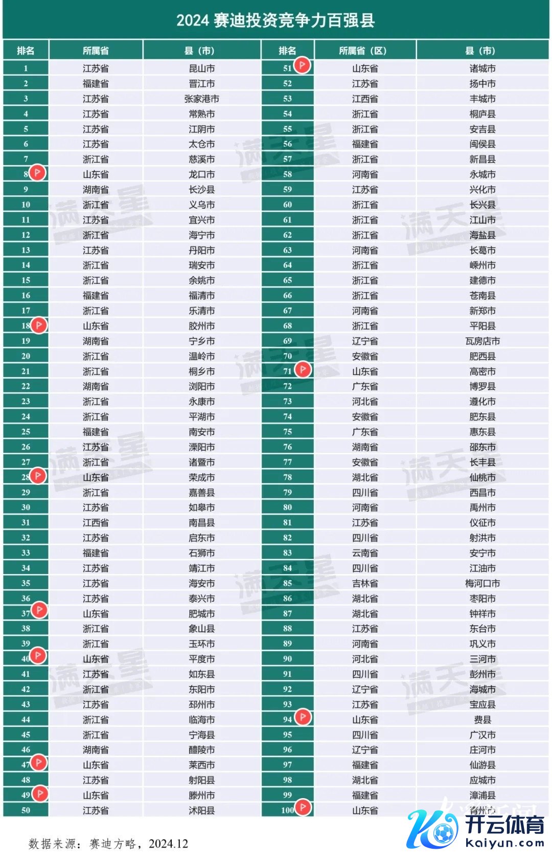 12月23日,赛迪方略县域经济扣问中心崇拜发布2024赛迪投资竞争力百强县及西部百强县。榜单如下,其中标小红旗的为山东省上榜市县九游体育app娱乐,共11个。