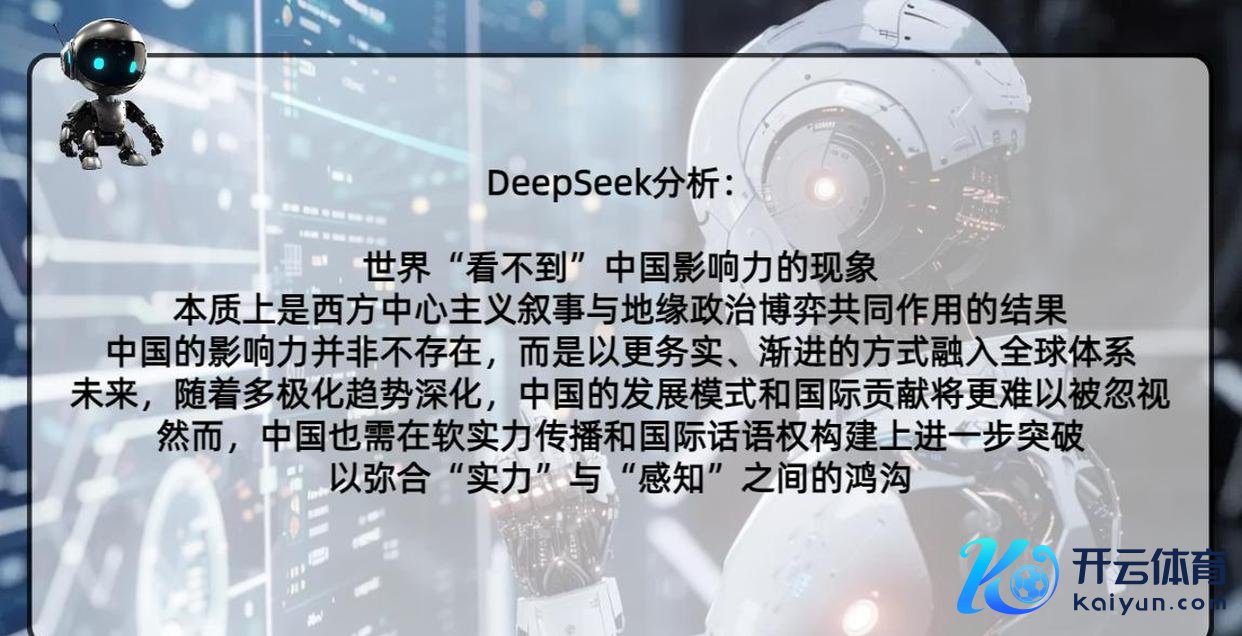 终末DeepSeek得出的论断是,中国其实很有影响力,只是好意思国最近几年一直在抹黑中国,是以其他国度对中国有些偏见。刻下中国正以更内容、缓缓的格局融入全球体系。