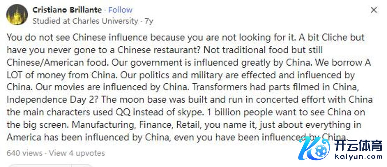 另一位网友说,你看不到中国的影响,可能是因为你没去找。你连中餐馆皆没去过?中国菜诚然不是好意思国主流食品,但如实对刻下的好意思国照旧有影响的。
