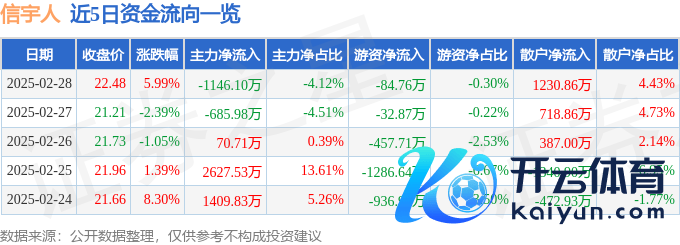 本站音讯,阻抑2025年2月28日收盘,信宇东说念主(688573)报收于22.48元,高潮5.99%,换手率25.03%,成交量12.63万手,成交额2.78亿元。