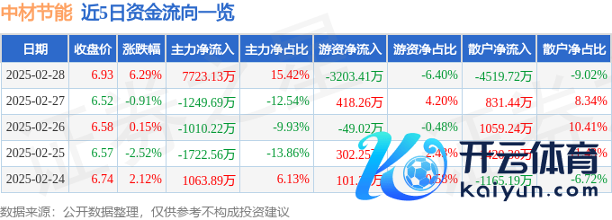 本站音讯,胁制2025年2月28日收盘九游体育app娱乐,中材节能(603126)报收于6.93元,高涨6.29%,换手率11.78%,成交量71.92万手,成交额5.01亿元。