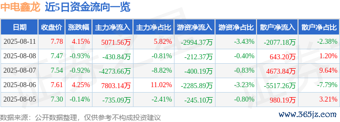 本站音信,截止2025年8月11日收盘Ninegame九游体育,中电鑫龙(002298)报收于7.78元,上升4.15%,换手率17.08%,成交量111.66万手,成交额8.72亿元。